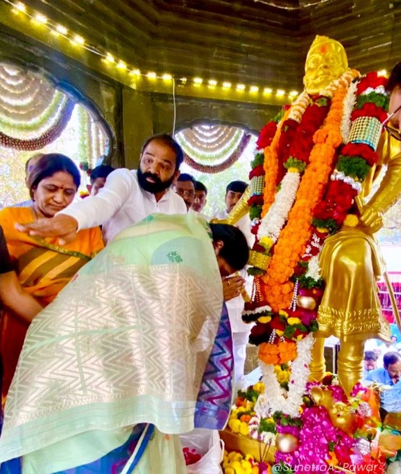 पुणे : छत्रपती संभाजी महाराज यांच्या ३३७ व्या बलिदान स्मरणदिनानिमित्त राज्याच्या उपमुख्यमंत्री आणि पुणे जिल्ह्याच्या पालकमंत्री सुनेत्रा अजित पवार यांनी तुळापूर येथील समाधीस्थळी जाऊन अभिवादन केले आणि समाधीचे दर्शन घेतले. यावेळी आमदार ज्ञानेश्वर कटके, आमदार बापुसाहेब पठारे, जिल्हा परिषद सदस्य किरण साकोरे, मोनिका हरगुडे, पंचायत समिती सदस्य, जिल्हाधिकारी जितेंद्र डुडी, जिल्हा परिषदेचे मुख्य कार्यकारी अधिकारी गजानन पाटील, अतिरिक्त मुख्य कार्यकारी अधिकारी चंद्रकांत वाघमारे, उपविभागीय अधिकारी यशवंत माने, अपर तहसीलदार तृप्ती कोलते, शिरुरचे तहसीलदार बाळासाहेब म्हस्के, वढू बुद्रुकचे सरपंच कृष्णा आरगडे, तुळापुरच्या प्रशासक संरपच ॲड. गुंफा इंगळे आदी उपस्थित होते. उपमुख्यमंत्री सुनेत्रा पवार या छत्रपती संभाजी महाराज यांच्या पुण्यतिथीनिमित्त तुळापूर येथे आयोजित मुकज्योत पदयात्रेत गावकऱ्यांसोबत सहभागी झाल्या. तुळापूर येथील संगमस्थळी जाऊन त्यांनी संगमेश्वराचे दर्शन घेतले. तसेच त्यांनी तुळापूर स्मारकाच्या अनुषंगाने सुरू असलेल्या विविध विकासकामांचा आढावा घेऊन संबंधितांना आवश्यक त्या सूचना दिल्या.